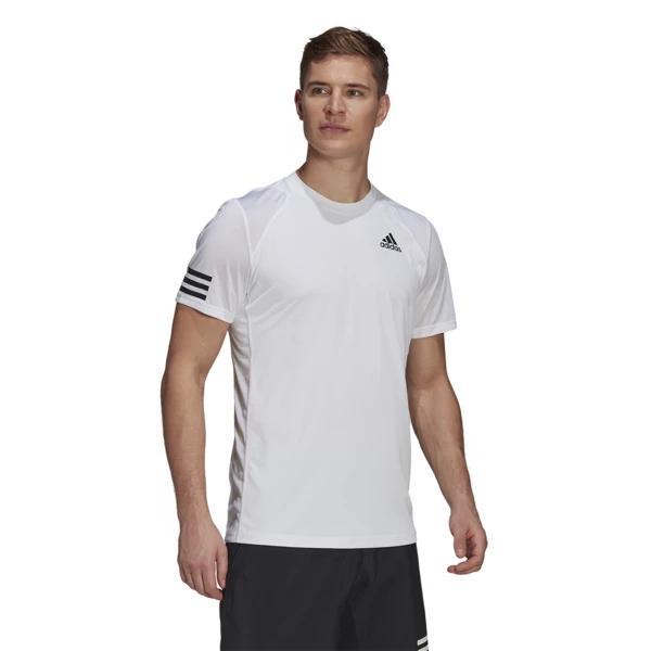 Country club style with a contemporary twist. Showing off horizontal 3-Stripes on one sleeve, this adidas Club tennis tee is built for comfort. Mesh panels, ventilated fabric and moisture-managing AEROREADY keep you cool and dry through the most intense rallies. An underarm gusset provides the freedom you need to nail every shot.