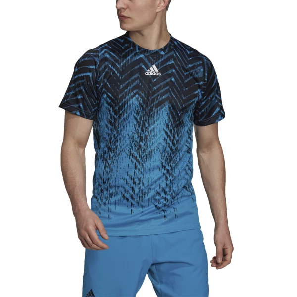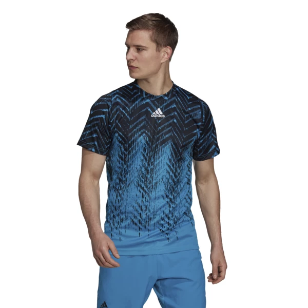 Top 10 🛒 Adidas Men’s Freelift Primeblue Print Tee Black Sonic Aqua ✨