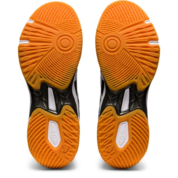 A wrap-up outsole and outrigger is a functional support component during side-to-side movements. In contrast, the heel wrap-up expands the contact area during the landing phase of your stride to help generate a smoother landing. Lastly, the flexible grooves in the outsole are complemented with a side grip design that improves flexibility on the court.