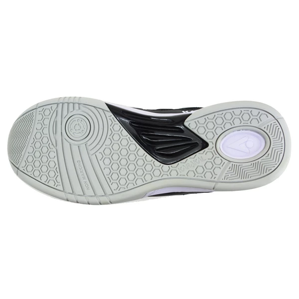 The exclusive Karakal non-marking outsole with its built-in turning circle is designed to make direction changes easier. The extra tacky Gum Rubber compound gives great adhesion when the foot is planted, deep grooves across the forefoot allow the toes to bend naturally and the TPU Anti β reverse bend insert provides stability and has the potential to reduce foot and lower limb injuries.